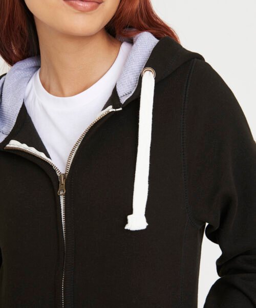 This hoodie also features side panels for a flattering fit, making it ideal for those looking for a more contemporary look. The double fabric hood, with its Heather Grey waffle fabric inner, provides extra warmth and texture, while the chunky white flat lace drawcord adds a stylish, premium finish. With deep ribbed cuffs and hem, plus a kangaroo pouch pocket for added convenience, this zoodie is as practical as it is comfortable. It’s the perfect choice for personalised workwear, branded uniforms, or promotional clothing, and it’s available for bulk orders, making it ideal for businesses and teams. Customisation is easy; add your logo, text, or artwork when ordering for a unique, professional look that promotes your brand effectively.