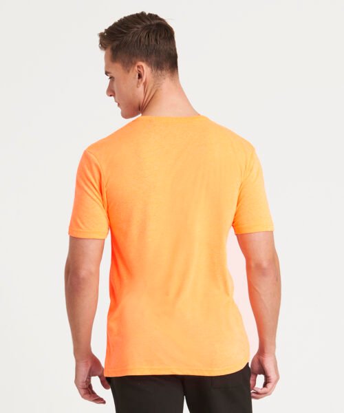 Modern fit. Short sleeves. Side seams. Taped neck. Ribbed crew neck. Twin-needle stitching detail on sleeve and bottom hem. Size label only for easy rebranding – colour coded black for unisex.